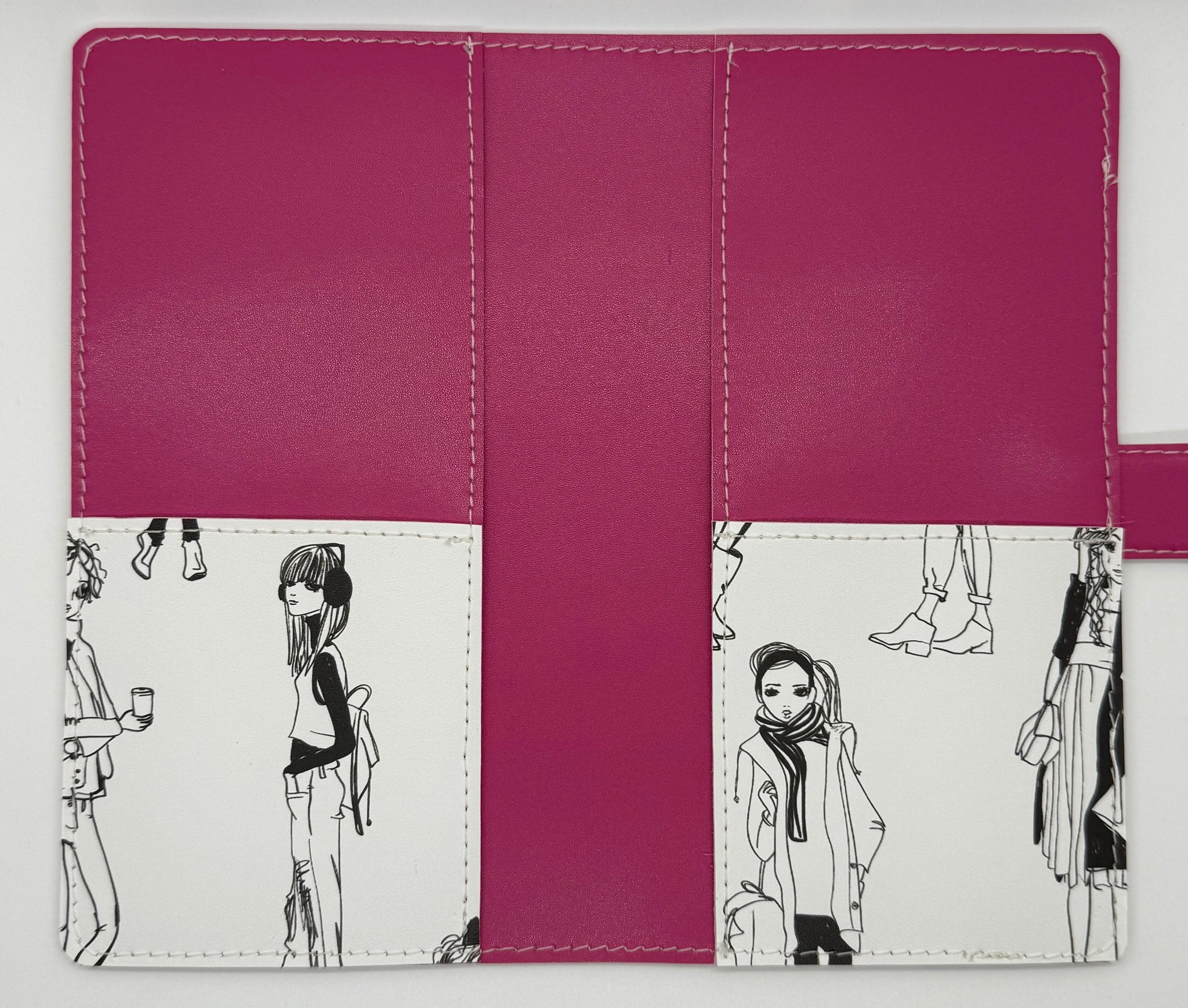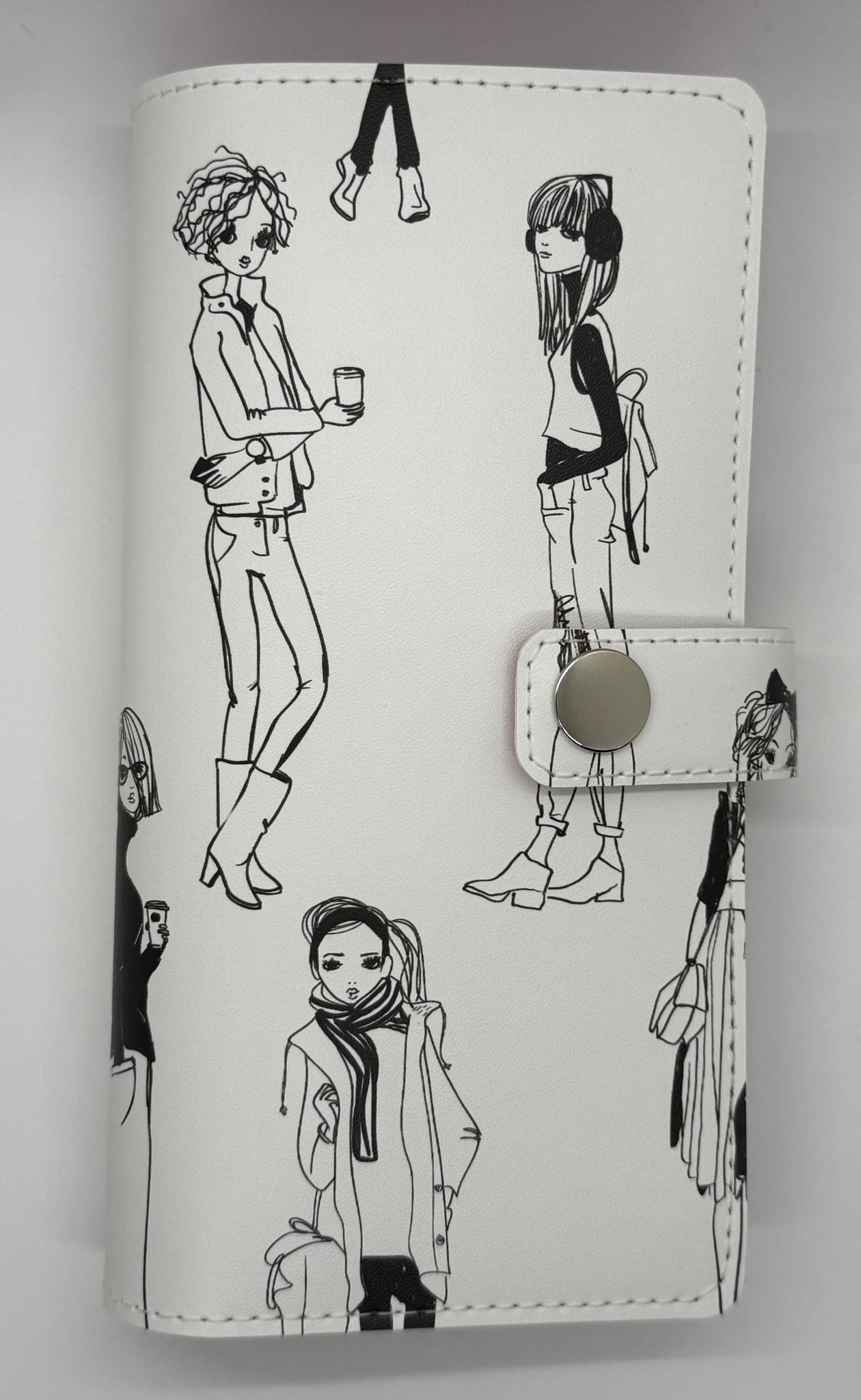 WEEKS size cover made with Faux Leather in Fashion Girls print. Silver Snap Closure.